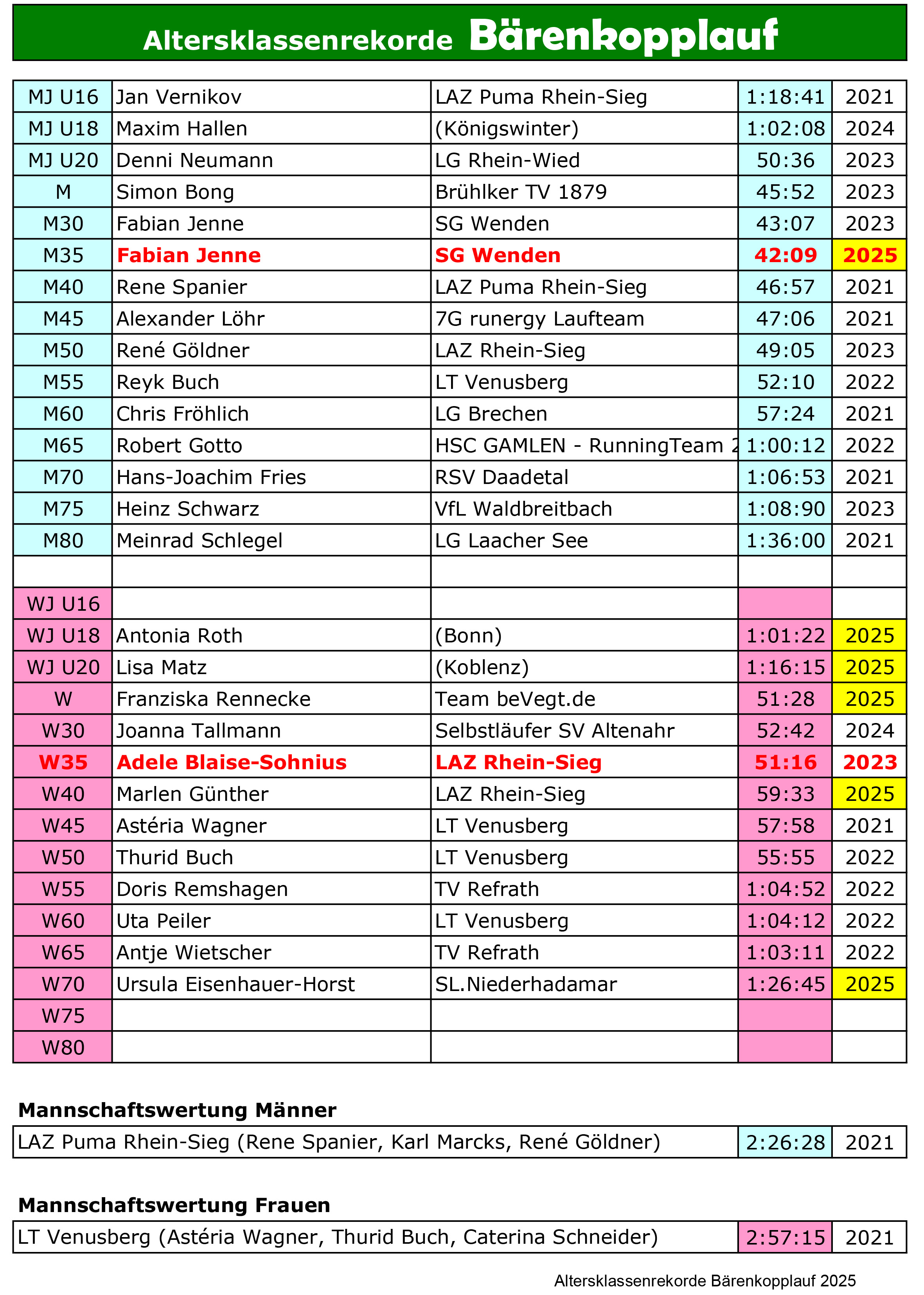 In den weiblichen Altersklassen wurden 5 Altersklassenrekorde erzielt.